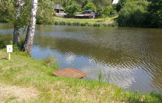 Chytací místo větších rozměrů s malým molem uprostřed.