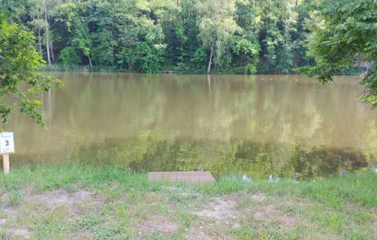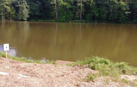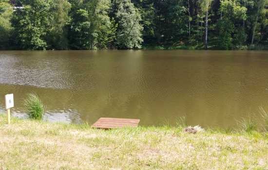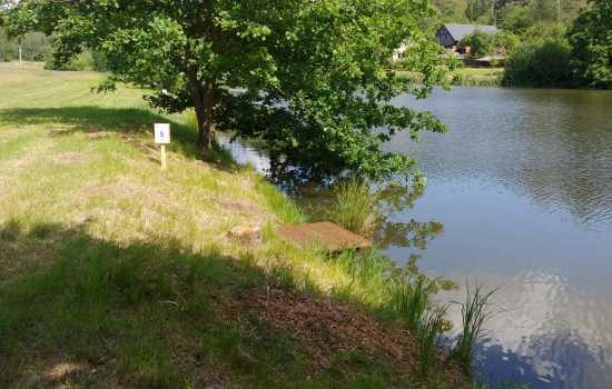 Místo s největší hloubkou na celém rybníku, nejblíže k hrázi. Doporučujeme nahazovat vpravo směrem na hráz.